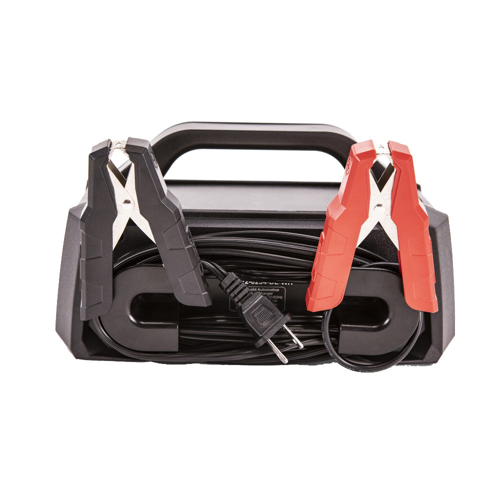 The charge rate selection button makes it easy to change between 2 AMPs, 8 AMPs, and 15 AMPs. Connect the hard-wired clamps to your 12V battery, plug in the AC power cord, and select your charging mode of choice. Battery Tender® smart battery chargers extend battery life by 2X or more.