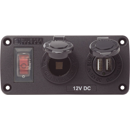 Blue Sea 4363 Water Resistant USB Accessory Panels - 15A Circuit Breaker, 12V Socket, 2.1A Dual USB Charger [4363]