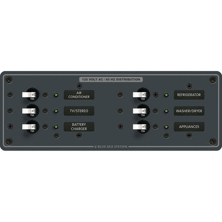 Blue Sea 8097 AC 6 Position Toggle Circuit Breaker Panel - White Switches [8097]