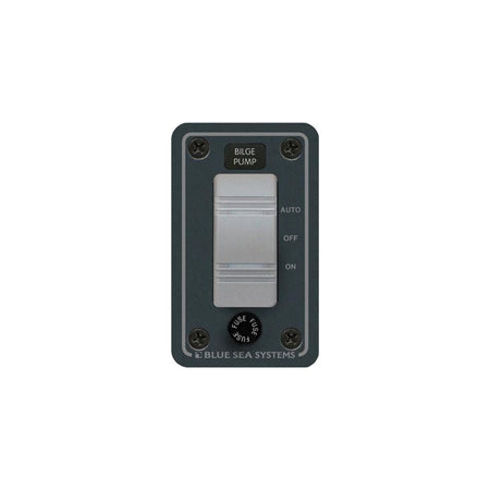 Blue Sea Systems water resistant 12/24 Volt DC Bilge Pump control panel with Contura rocker switch and fuse holder for fuses up to 20amp