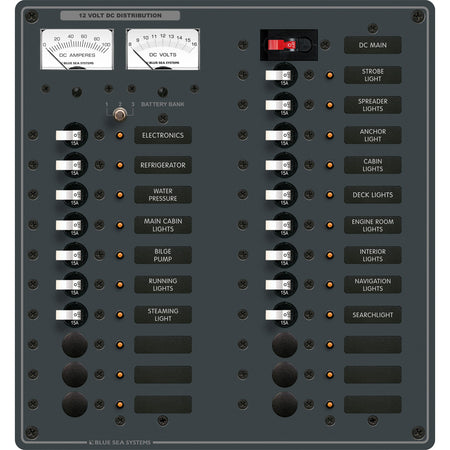 - Panels with meters include toggle switch for mounting up to 3 battery banks