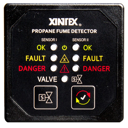 Fireboy-Xintex Propane Fume Detector Alarm w/2 Plastic Sensors Solenoid Valve - Square Black Bezel Display [P-2BS-R]