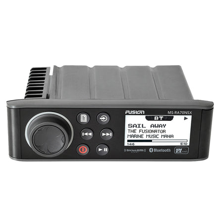 NMEA 2000 Ready for connection and control from any supported Multi-Function Display - The MS-RA70NSX is a Fusion-Link Wired NMEA 2000 certified product and is compatible with a range of the world’s leading Multi-Function Displays for on-screen audio control. When pairing the MS-RA70NSX with a supported chartplotter or fishfinder, you bring your music to the big screen, allowing you to keep an eye on the charts or the fish while skipping tracks or adjusting the volume at the same time. In addition to MFD control, the MS-RA70NSX will connect to any Fusion NRX series remote control attached to the same powered NMEA 2000 network for localized control of the audio zones