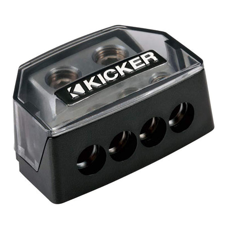 The KICKER® DB4 distribution block uses 1/0 to 8 Gauge wire.