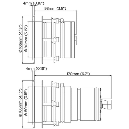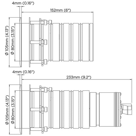 The ultra low profile outer face of the housing is designed for vessels wanting to go fast and have no impact on speed or flow of water over the hull, perfect for the sides or running surfaces.