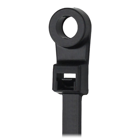 8" Cable Tie with Mounting Ring - Black - 50lb Tensile Strength - 2" Bundle Diameter - 100 Piece Bag
