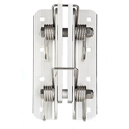 This adjustable outboard motor bracket is designed for motors up to 20 HP or 115 lbs. Its heavy-duty, light weight aluminum is designed for fresh water use on both powerboats and sail boats. Unit is spring loaded. 11 in. of travel with 5 stops.( Not to be used with 4 stroke engines.)