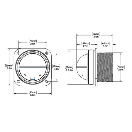 - Easily Installed w/4 mounting screws provided, Fits 3″ (762 mm) Mounting Hole.