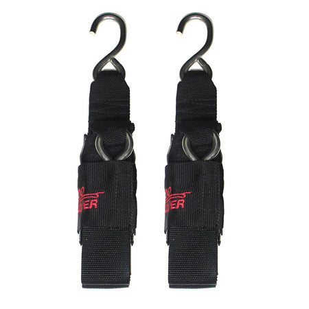 This stainless steel deluxe 2" x 6' trailer tie-down is our finest over-center locking buckle with wrap around buckle protection that is proven to stay clamped under the worst road conditions. It features American made stainless steel S Hooks for saltwater applications. 1,200 lbs. - sold in pairs.