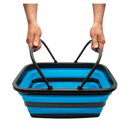 Be campsite ready for anything with the SOL Flat Pack Sink 8 L. Washing up after a big meal? Pop open this sink for easy clean-up. Turn the drain in the base to empty dirty water with ease. Plus, with dual carry handles, this sink converts to a basket to carry all your supplies.