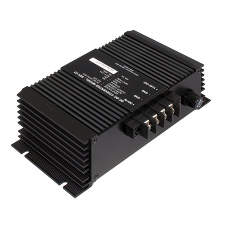 This high efficiency switch-mode step-down DC-DC converter converts an input voltage of 24 VDC nominal (range 20 VDC to 35 VDC) to a highly regulated output voltage of 12 VDC nominal (13.8 VDC) at 20 Amps. The SDC-23 DC-DC converter is non-isolated (no galvanic isolation between input and output) and meant for use in negative ground systems. Features include overvoltage/short-circuit protection, temperature compensated current limit, output-side overvoltage protection, input-side overvoltage/ transient protection and input-side reverse polarity protection. The SDC-23 DC-DC converter is designed for heavy duty applications.