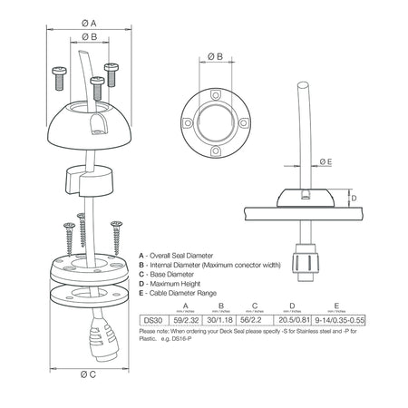 DS30-S Vertical Cable Seal - Stainless Steel