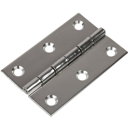 These Butt Hinges consist of two rectangular leaves that attach to the abutting surfaces of a door and door jamb. Designed to be mortised in for a flush installation. Constructed of corrosion-resistant stamped 304 stainless steel. Installs with six #8 FH fasteners (not included).