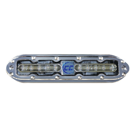 The SCM-10-EXT-CC extended color underwater light provides your vessel with 42 watts of intense LED lighting. Easily switch between 12 standard colors or use an or use a Shadow-NET® enabled product to enjoy unlimited colors. The SCM-10-EXT-CC’s low profi le design allows for many mounting locations. The unique stainless steel housing compliments the look of any trailer or lift kept boat.