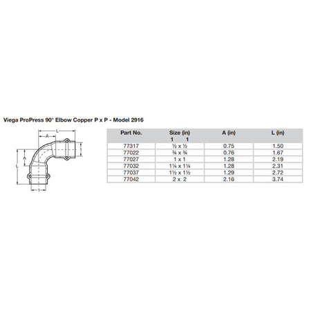 ProPress 1-1/2" - 90° Copper Elbow - Double Press Connection - Smart Connect Technology