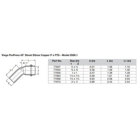 ProPress 3/4" - 45° Copper Elbow - Street/Press Connection - Smart Connect Technology