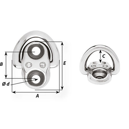 Folding Pad Eye - 6mm Diameter (15/64") - 2 Fixed Holes