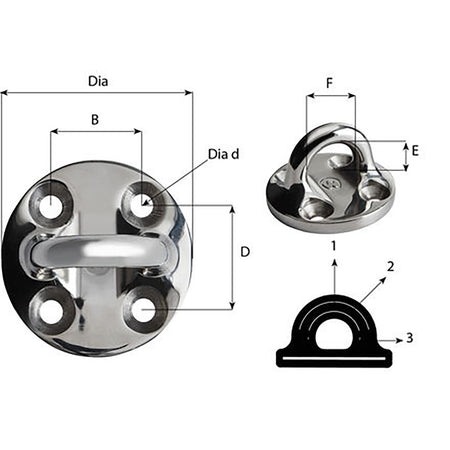 Round Pad Eye - 57mm Diameter (2-1/4") - Fixed