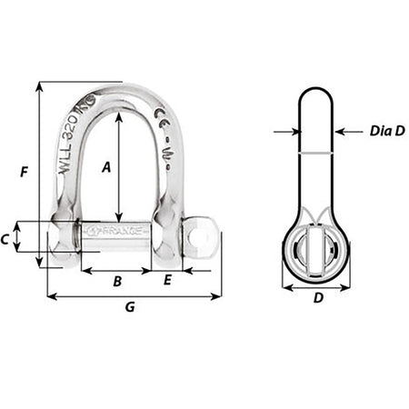 Self-Locking D Shackle - 12mm Diameter - 15/32"